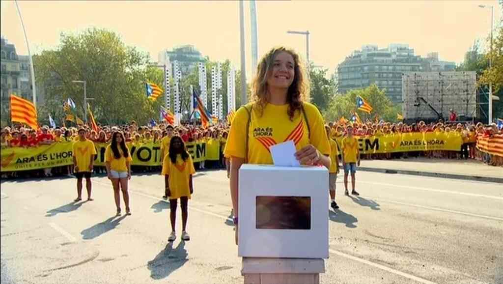 Fue en esa manifestación que la entonces presidenta de ANC y militante de ERC en Sabadell (Barcelona), Carme Forcadell Lluís, reclamó hacer posible el golpe de estado separatista del 1-O: «Parlamento, Gobierno, presidente, pongan las urnas» del referéndum de autodeterminación.