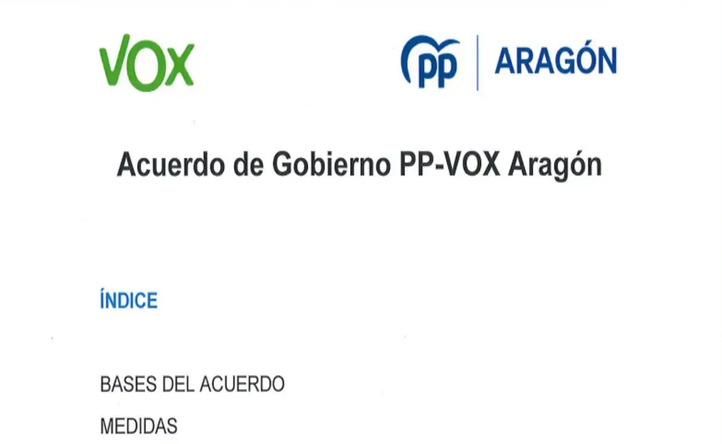 Zaragoza (Aragón) España, miércoles 22 de abril de 2026 (Lasvocesdelpueblo).- Los 10 puntos clave del Acuerdo VOX-PP en Aragón firmado este miércoles en Zaragoza.