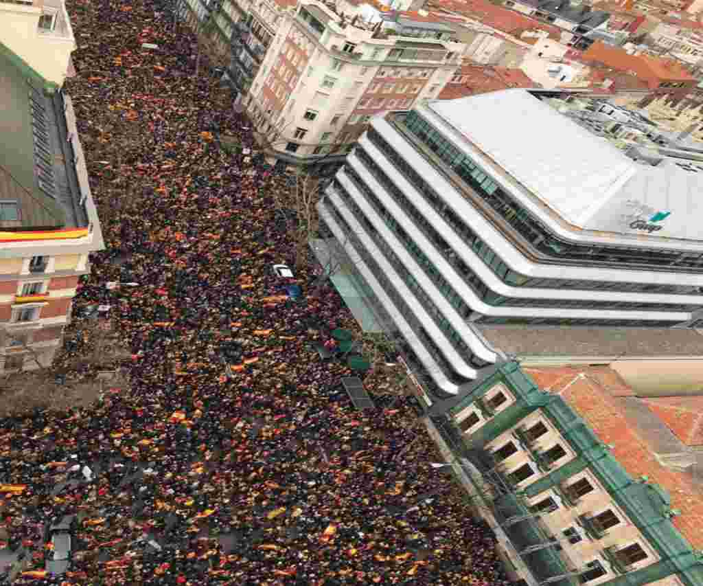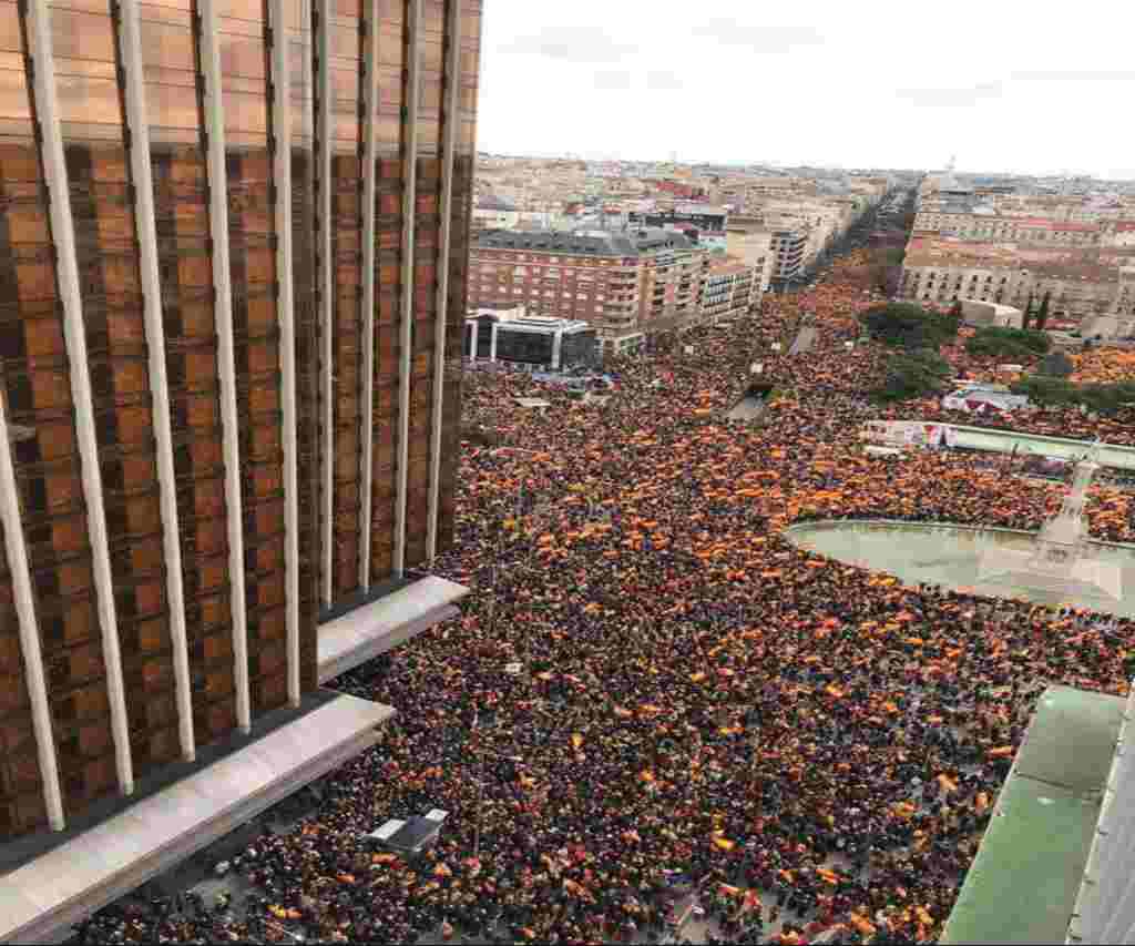 VÍDEO. Madrid, 10.02.0219. Más de 200 mil personas denuncian la traición del primer presidente de España a España, Pedro Sánchez.