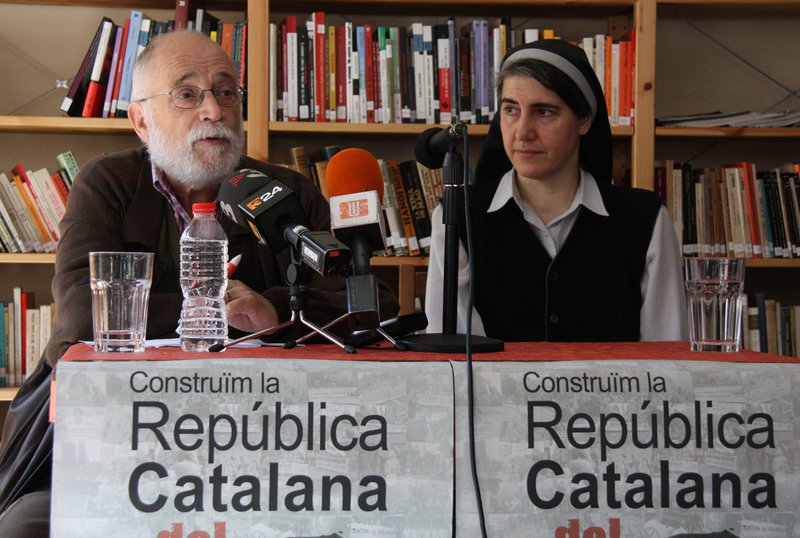 Redacción – Unos 150 activistas izquierdistas separatistas catalanes que defienden la creación de una república catalana conocida como «Países Catalanes -incluido: las Islas Baleares, Valencia, Cataluña, el Sur de Francia, Aragón (…)», tal como firman el manifiesto- han firmado hoy un manifiesto para dar «apoyo a la posición y reflexión política» de Candidatura de Unidad Popular (CUP) de Antonio Baños Boncompain y Anna Gabriel Sabaté en el debate sobre la investidura del candidato de Juntos Por El Sí (JxSí), Artur Mas Gavarró. A continuación, reproducimos íntegramente el manifiesto. Barcelona, 28 de noviembre 2015. Fotografía: El economista izquierdista separatista, Arcadi Oliveres (Izquierda), y la monja separatista, Teresa Forcades (Derecha), en una roda de prensa. Foto/ACN.