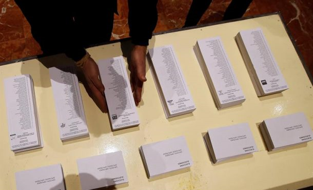 Efe – Una de las claves de estas elecciones puede estar en la participación, que si ya fue elevadísima en 2015 -rozó el 75%- esta vez los expertos en demoscopia pronostican que puede alcanzar una cifra récord. Barcelona (España), jueves 21 de diciembre de 2017. Fotografía: Un operario coloca papeletas electorales en el Ayuntamiento de Barcelona. EFE