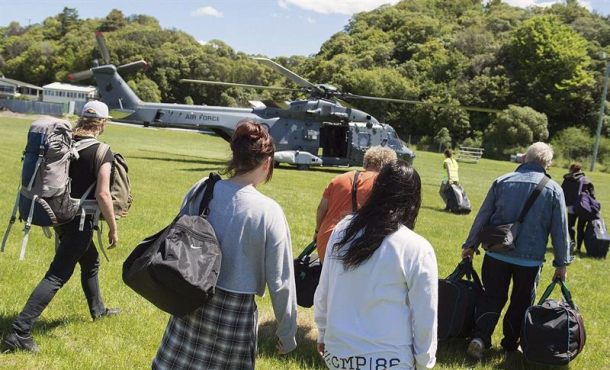 Efe – Ocho españoles se encuentran entre los varios centenares de turistas que esperan ser evacuados hoy de Kaikura, la localidad más afectada por el terremoto que sacudió el domingo la región central de Nueva Zelanda. Sídney (Australia), miércoles 16 de noviembre de 2016. Fotografía: Fotografía de las Fuerzas Armadas de Nueva Zelanda (NZDF) que muestra a unos turistas y a unos lugareños siendo evacuados por miembros del ejército neozelandés de la localidad costera de Kaikoura (Nueva Zelanda), tras el terremoto de 7,8 grados de magnitud que sacudió el centro del país el domingo. Efe.
