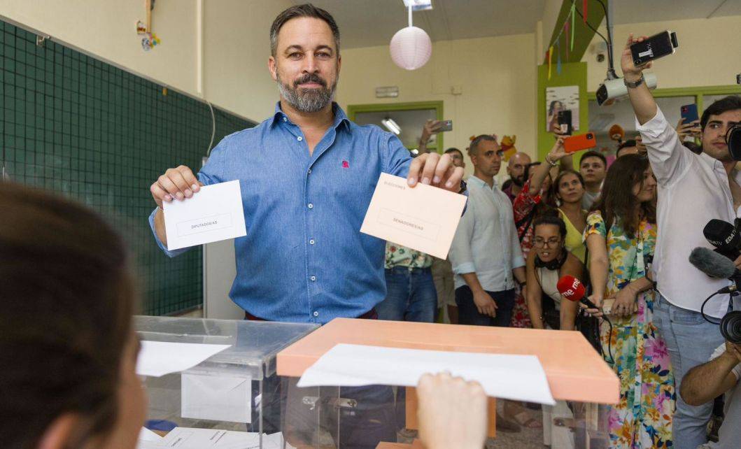 Redacción.- Madrid (España), domingo 23 de julio de 2023. Jornada electoral de las decimosextas elecciones a las Cortes generales del Reino de España. El candidato de VOX a la Presidencia de Gobierno de España y presidente de esta formación política, Santiago Abascal Conde, ha agradecido -instantes después de votar en su colegio electoral- el trabajo de todos los apoderados, responsables de mesa y Fuerzas y Cuerpos de Seguridad del Estado que hacen posible que estas elecciones se desarrollen con normalidad.