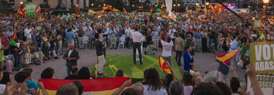 Las elecciones no están ganadas y yo quiero llamar a la movilización masiva hasta el domingo, quiero pedir a todos los que confían en VOX que no den esta batalla por ganada, que no hagan como el PP que ya está repartiéndose ministerios y vicepresidencias, que hablen en su entorno, que hablen con sus familiares, que hablen en sus trabajos, que hablen en los bares, que hablen en las playas y que convenzan a todos los españoles que tienen dudas y que les digan aquello que es verdad, que sólo VOX se atreve al cambio de rumbo que necesita España, que sólo VOX se atreve a enfrentar de verdad todas las consecuencias de las políticas socialistas y de sus aliados separatistas y terroristas y que sólo VOX se atreve, en definitiva, a proteger nuestra economía, nuestras familias, fronteras y a defender nuestro campo, industria y libertad.