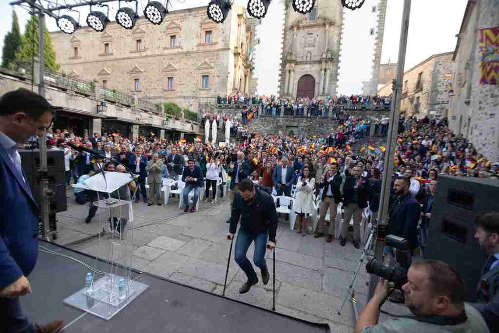 Abascal ha participado la noche de este sábado, 18 de mayo de 2019, en un acto de campaña en Cáceres junto con candidatos locales y autonómicos de su partido —entre ellos el aspirante a presidir la Junta de Extremadura, Juan Antonio Morales—, arropado por una plaza de «San Jorge», en el casco histórico, abarrotada de personas.