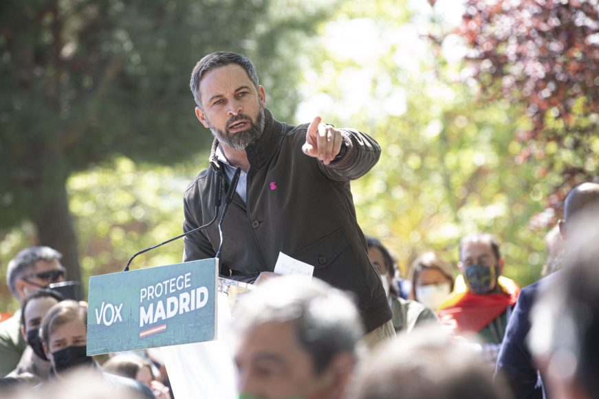 Efe – El presidente de VOX, Santiago Abascal, ha dicho que es «absolutamente esencial» que la candidata del partido para presidir la Comunidad de Madrid, Rocío Monasterio, «gane las elecciones» u obtenga «una gran fuerza» para «condicionar» el Gobierno madrileño «para que no vaya por una deriva izquierdista». Boadilla del Monte (Madrid) España, sábado 1 de abril de 2021.
