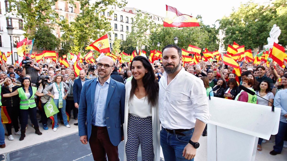 Abascal ha llamado al voto durante el cierre de la campaña electoral celebrado en la madrileña plaza de la Villa de París, justo delante de la sede del Tribunal Supremo, donde se desarrolla el juicio del procés, en el que Vox ejerce como acusación popular.