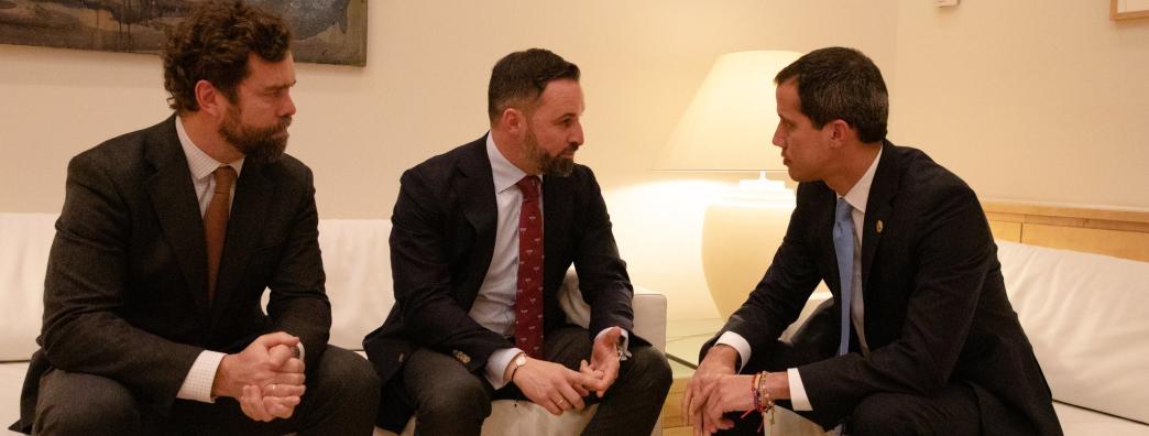 Santiago Abascal se ha ofrecido, además, a colaborar con Guaidó en defensa de la libertad en Venezuela, pero ha pedido también al presidente legítimo «ayuda para que la libertad, la democracia y la división de poderes no desaparezcan en España».