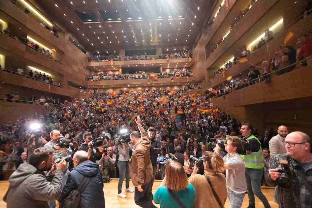 VÍDEO. Valladolid, 15.04.2019. VOX saca músculo en Valladolid. Más de 1700 personas abarrotan el auditorio Centro Cultural Miguel Delibes de Valladolid mientras otros más de mil se quedan en el Hall sin poder acceder en el auditoria y más de mil también se quedan fuera del Hall por aforo superados tanto en el Hall como en el auditorio del mitin.