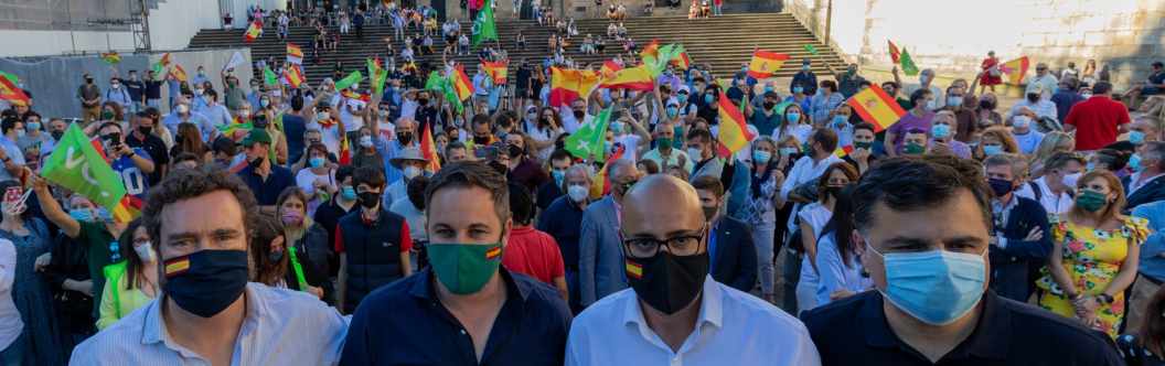 VÍDEO. Santiago de Compostela, Elecciones gallegas 2020. (09.07.2020). Mitin de campaña de VOX con Abascal, Ricardo e Iván espinosa.