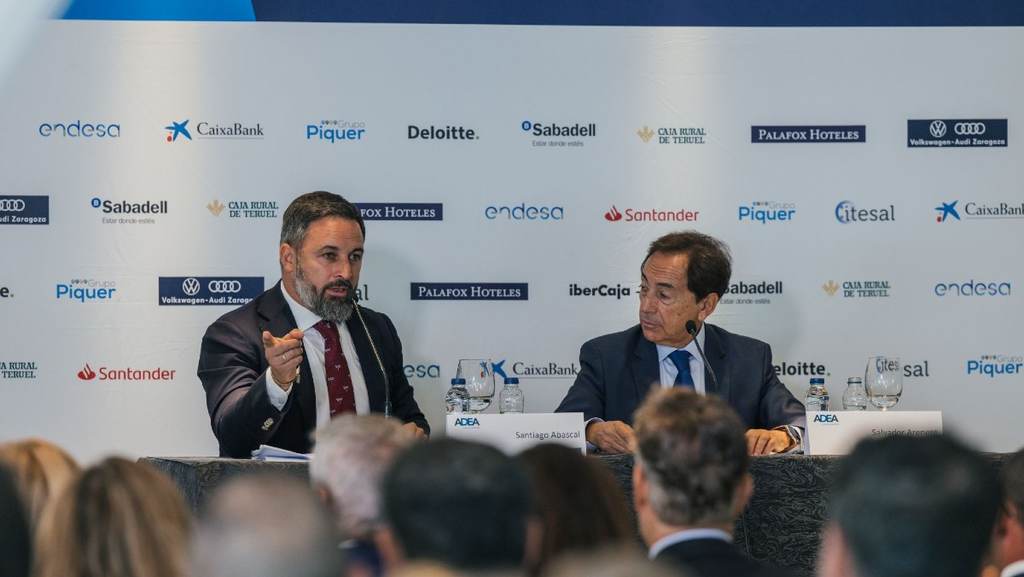 Redacción.- Zaragoza (España), miércoles 21 de septiembre de 2022. El presidente de VOX, Santiago Abascal Conde, ha participado este miércoles en el foro empresarial Asociación de Directivos y Empresarios de Aragón (ADEA), donde, durante una conferencia coloquio, ha explicado el programa de VOX para los españoles.