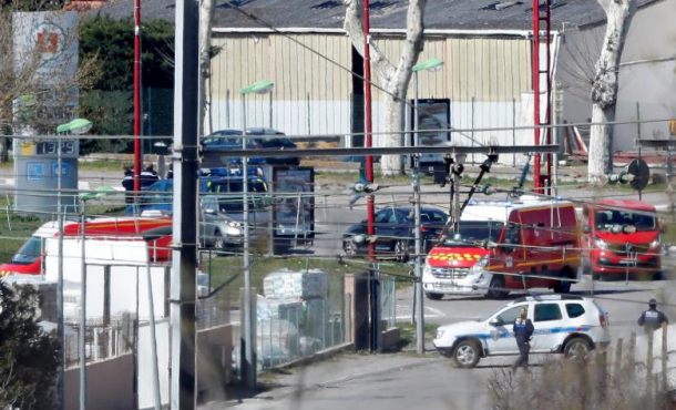 Efe – «El asalto se produjo a las 14.25 (13.25 GMT) y el terrorista ha sido abatido», señalaron las fuentes, que agregaron que en el asalto han resultado heridos dos gendarmes de las fuerzas de intervención del GIGN, así como el gendarme que seguía como rehén en manos del presunto terrorista. Trèbes (Francia), viernes 23 de marzo de 2018. fotografía: TRÈBES (CARCASONA (FRANCIA), 23.03.2018. Vehículos de los servicios de emergencia permanecen aparcados en los alrededores del supermercado de la cadena «Système U» donde se ha llevado a cabo una toma de rehenes en un supuesto acto terrorista en Trèbes (Francia) hoy, 23 de marzo de 2018. Efe