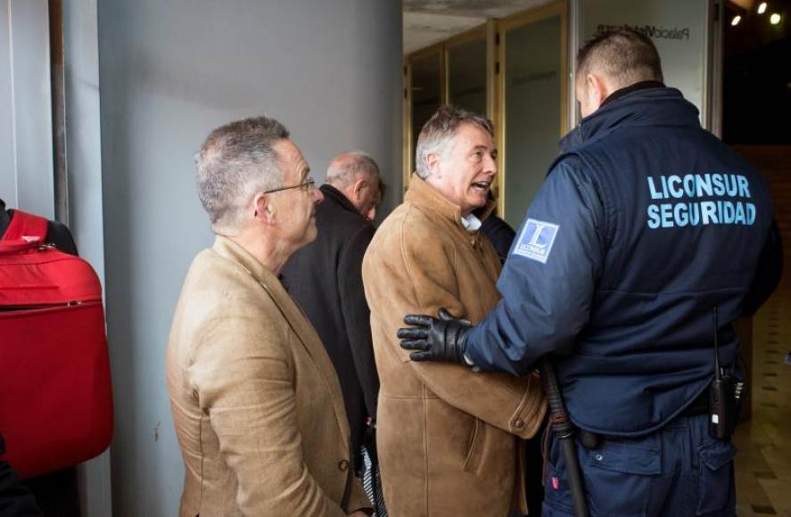 Liderados por Carmelo González (i), un grupillo de afiliados del sector crítico al éxito electoral de VOX en toda España y al éxito y buena gestión de su Comité Ejecutivo Nacional (CEN), liderado por Santiago Abascal Conde, han intentado acceder a la Asamblea General Ordinaria que celebra el partido en la plaza de Vistalegre, lo que les ha negado la organización con el argumento de que «los afiliados no pueden entrar».