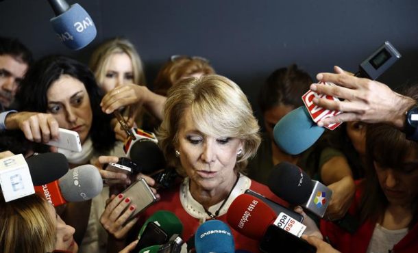 Efe – «Por tanto, para mí, sería lo de Ignacio González muy lamentable», ha dicho con voz entrecortada, al borde del llanto, para acto seguido marcharse. Madrid (España), jueves 20 de abril de 2017. Fotografía: La expresidenta de la Comunidad de Madrid Esperanza Aguirre se ha emocionado hoy y ha estado a punto de romper a llorar ante los periodistas tras su declaración en el juicio de Gürtel al referirse a la detención de su sucesor, Ignacio González, por supuesta corrupción en el Canal de Isabel II. Efe.