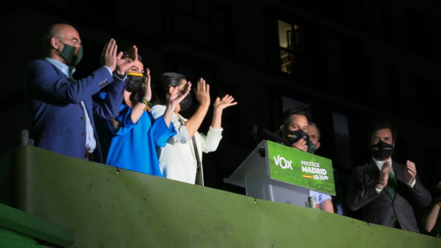 «Ahora salimos a derrotar a Pedro Sánchez», apuntó el líder de VOX. La victoria de VOX de Rocío Monasterio San Martín y PP de Isabel Díaz Ayuso obligó al Secretario General de Podemos, exvicepresidente de Gobierno de coalición del PSOE y Unidas Podemos y candidato de Unidas Podemos a presidir la Comunidad de Madrid, Pablo Manuel Iglesias Turrión, a dimitir dejando todos sus cargos y abandonando la política pm.