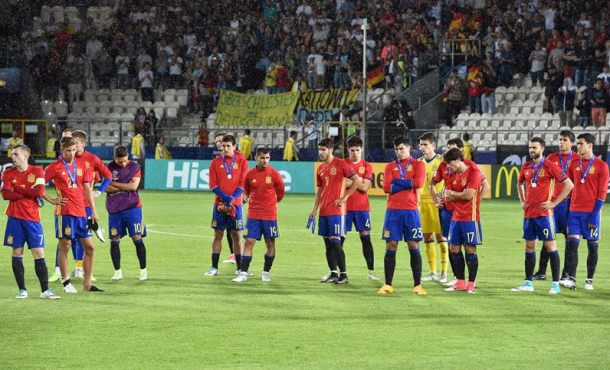 0 – España: Kepa; Bellerín, Jorge Meré, Vallejo, Jonny (Gayá, m.51); Marcos Llorente (Borja Mayoral, m.82), Saúl, Ceballos; Deulofeu, Marco Asensio y Sandro (Williams, m.71).
