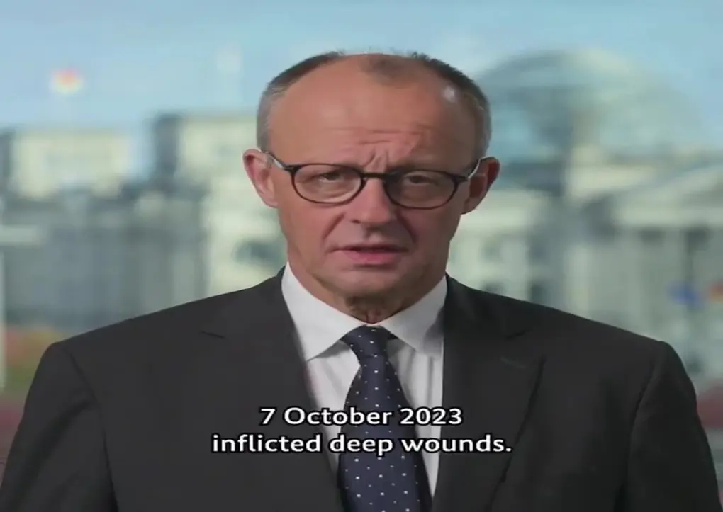 El canciller de Alemania, Joachim-Friedrich Martin Josef Merz (Friedrich Merz), en una Declaración Institucional, con el motivo del II Aniversario del October 7 Hamas ISIS Massacre/7 Octubre Masacre de Hamas ISIS, ha hecho un llamamiento al pueblo alemán de no caer en el odio antisemita del pasado, promovido nuevamente desde las instituciones de Europa en el siglo XXI y aprovecharse de este día de dolor, que representa la mayor masacre de personas judías desde la Shoah nazi del Tercer Reich alemán (Holocausto), y buscar a las familias alemanas de coeficiencia Judaísmo para mostrarlos su cariño como compatriotas alemanes: «vayan mañana a (visitar) a nuestros compatriotas judíos, donde sea posible para ellos; vayan a las comunidades judías; demostremos a todos que estamos a su lado y que juntos vamos a hacer todo para que los judíos puedan vivir aquí en Alemania sin miedo, para que puedan vivir con confianza».