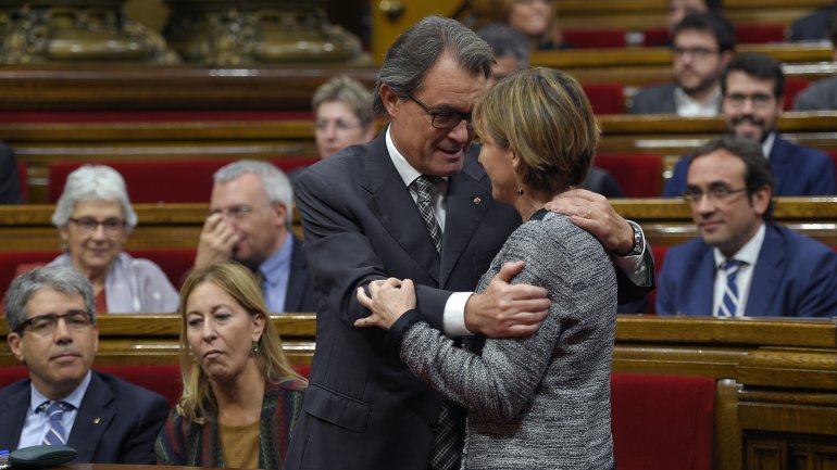 Readacción – «Después de un largo rodaje de proceso democrático, parece insólito que tenga que ser el pueblo, agobiado por la situación, quien se postule defensor de España al reconocer a sus Fuerzas Armadas en su función y al enarbolar la bandera al grito de su secuestrada condición de español», argumenta hoy la colaboradora de lasvocesdelpueblo Ana María Torrijos, licenciada en Filología Clásica, en su nueva reflexión de este sábado en el Blog de Lasvocesdelpueblo [aquí]. Barcelona, 31 de octubre 2015. <Fotografía: Los golpista de la candidatura separatista catalana, Juntos Por El Sí, Artur Mas Gavarró (i) junto con Carmen Forcadell Lluís (d), durante la primera sesión del Parlamento de la XI legislatura. Foto AFP>.