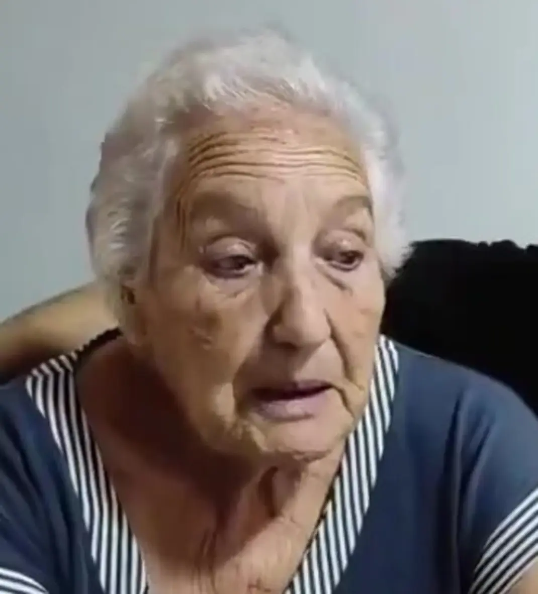 Él me dejó bien llena de moretones (hematomas), y nada más. Y bueno… Os quiero alertar de que vayan con cuidado (por las calles del barrio) porque tengo 83 años, y eso es peligroso. Era un abrazo (enorme) para una anciana como yo… que pase un bandido así y le haga pasar eso…