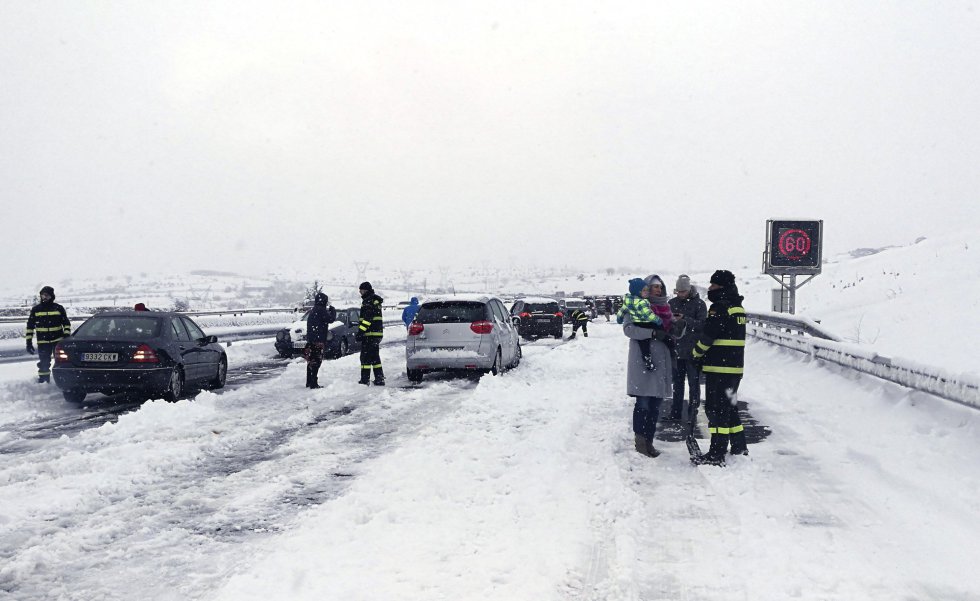 Miles de personas han pasado la noche atrapados por la nevada que desde este sábado colapsa varias carreteras españolas. Muchas familias, algunas con niños y personas mayores, han pasado hasta 18 horas en sus vehículos e la AP-6 sin agua, comida o información de cuándo remitiría la situación.