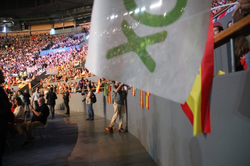 Efe – El alto tribunal expone en su auto que la querella interpuesta por VOX podría tener un «carácter preventivo» e insiste en que no puede ser admitida a trámite puesto que tras suspensión acordada por el Tribunal Constitucional «se procedió a su acatamiento». En su auto, el TSJC señala que finalmente los miembros independentistas de la Mesa acabaron acatando la prohibición, que el Constitucional les había notificado personalmente. Barcelona (España), jueves 18 de octubre de 2018. fotografía: MADRID (ESPAÑA), 07.10.2018. Vista general del Palacio Vistalegre reventado por los ‘voxes’. VOX. Ñ Pueblo (131)