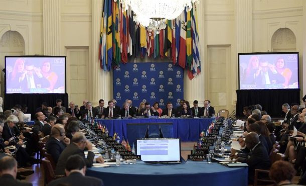 Efe – Argentina pidió al Gobierno de Nicolás Maduro iniciar «una nueva etapa del diálogo» con la oposición en la que cumpla compromisos de la anterior como «la liberación de los presos políticos, el respeto a las normas constitucionales, la separación de poderes y un calendario electoral con presencia de observadores». Washington (EEUU), miércoles 31 de mayo de 2017. Fotografía: Vista general de la vigésima novena reunión de consulta de Ministros de Relaciones Exteriores de la Organización de los Estados Americanos realizada en la OEA hoy miércoles 31 de Mayo de 2017, en Washington DC, EE.UU. Efe.