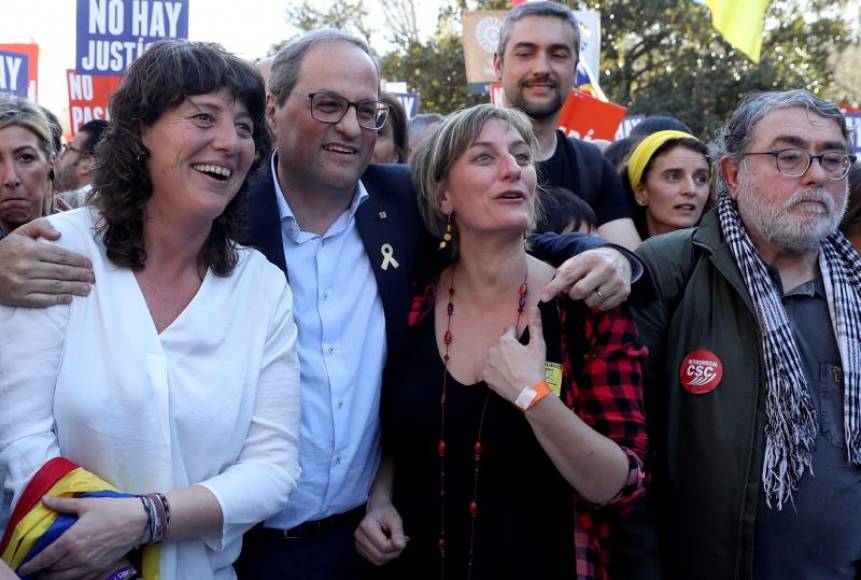 Lasvocesdelpueblo y Agencias – El independentismo se aventura ahora en la capital del Reino de España con el presidente de la Generalidad de Cataluña, Quim Torra Pla, junto al asesino terrorista, líder de la banda terrorista secesionista catalana que se hace llamar en dialecto catalán «Terre Lliure» (Tierra Libre), Carles Sastre Benlliure. Una de las víctimas de este asesino, actual hombre fuerte del independentismo, fue el industrial barcelonés José María Bultó Marqués. Se trata de un exitoso empresario español que murió asesinado mediante una bomba que la organización terrorista «Exèrcit Popular Català» de Carles Sastre Benlliure, el germen de lo que se convertirá más tarde en «Terre Lliure» le había adosado al pecho. Según los organizadores de la manifestación independnetista de este sábado en la capital de España, también se han desplazado desde Galicia, Castilla y León, Andalucía, Euskadi y Asturias numerosas personas que integran los más de sesenta colectivos sociales, organizaciones del 15M y entidades republicanas que, además de ANC y Òmniun Cultural, han convocado la protesta, en pleno juicio a los líderes encausados por el 1-O. Madrid (España), sábado 16 de marzo de 2019.