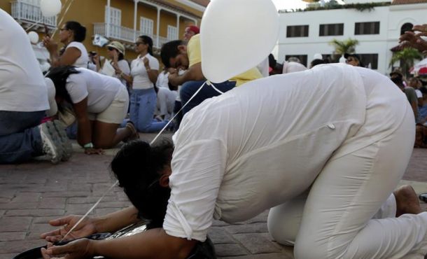 Agencias – Devotos piden de rodillas cancelar congreso la cuarta edición en Colombia de un congreso de la industria para adultos. «Cartagena es la tierra del Espíritu Santo y por eso hemos salido de las cuatro paredes (de la iglesia) para pedirle a Dios que se acuerde de Cartagena». Cartagena (Colombia), viernes 19 de mayo de 2017. Fotografía: Miembros de la iglesia cristiana La Unción participan en una protesta en Cartagena (Colombia). Efe.