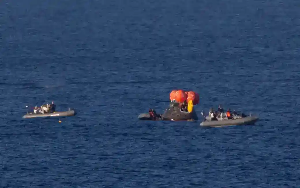 Merritt Island (Florida) Estados Unidos de América, viernes 10 de abril de 2026 (Lasvocesdelpueblo).- La nave espacial Orion de la misión Artemis II de la Nasa ameriza y sienta las bases de las primeras misiones tripuladas a Marte.