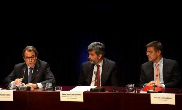 Una semana después de que el Tribunal Superior de Justicia de Cataluña citara a Artur Mas a declarar el 15 de octubre como imputado por su papel en la organización de la consulta alternativa del 9N, el presidente de la Generalitat en funciones ha coincidido en un acto con el ministro de Justicia, el presidente del Tribunal Supremo, Carlos Lesmes, y la Fiscal General del Estado, Consuelo Madrigal.