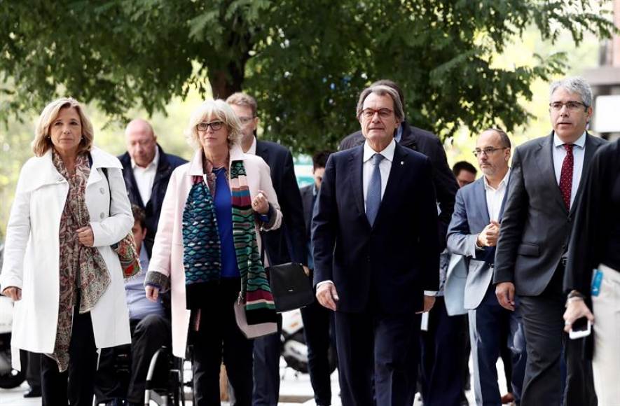 Efe – «No aceptamos en ningún caso la sentencia y reiteramos que de ninguna manera se ha producido ningún gasto irregular que comporte una responsabilidad contable que justifique la pena impuesta», han recalcado. Desde el primer momento, han señalado, «el gobierno de la Generalitat ha dejado claro que no se siente perjudicado económicamente y que los gastos del 9N fueron legales». Barcelona (España), lunes 12 de noviembre de 2018. Fotografía: BARCELONA (ESPAÑA), AÑO 2017. Los acusados y procesados, líderes del golpe de estado separatista del 9 de noviembre de 2014 (9-N), Artur Gavarró, expresidente catalán (primer plano en el centro) junto a su gobierno, las dos exconsejeras, Joana Ortega (iz.) e Irene Rigau ( segunda posición a la iz.), el consejero de presidente, Francesc Homs (derecha de Artur Mas). Efe