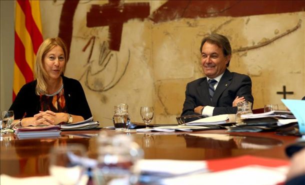 Lasvocesdelpueblo y Efe – El Gobierno del presidente separatista autonómico de Cataluña, Artur Mas Gavarró, ha avanzado este martes que no dará ningún «paso atrás» en la creación de las denominadas como ‘Estructuras del nuevo Estado catalán’ pese a la suspensión cautelar del Tribunal Constitucional y ha presentado un informe con el que denuncia una «ofensiva premeditada» del Gobierno para «asfixiar» a Cataluña;<Fotografía: El presidente del gobierno catalán, Artur Mas, y la nueva vicepresidenta del gobierno, Neus Munté (i), durante la reunión semanal del ejecutivo catalán, que se produce después de que el Tribunal Constitucional haya congelado algunas de las estructuras de estado que impulsaba la Generalitat en sus presupuestos. EFE/Toni Albir>.