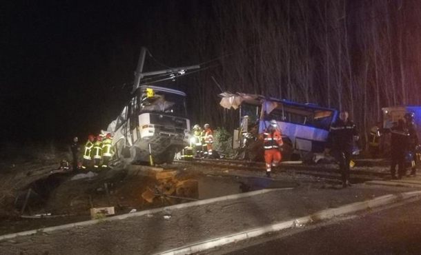 El accidente tuvo lugar sobre las 16.00 horas (15.00 GMT) en un paso a nivel en el municipio, próximo a la frontera con España, cuando el tren chocó con la parte trasera del autobús, sin que por el momento se conozcan las causas del siniestro.