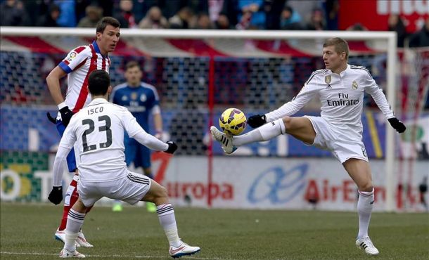 Enfrente, el Real Madrid llega al Calderón con el objetivo de responder al cartel de favorito que le cuelgan y hacer olvidar el cambio de dinámica que protagoniza en casa del vecino, donde no ha ganado en los cuatro últimos enfrentamientos y fue vapuleado en un último referente en la Liga (4-0) que acabó haciendo mucho daño la pasada campaña en el inicio de una caída sin freno hacia la ausencia de grandes títulos.