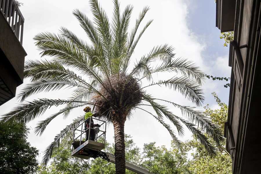 Así lo ha explicado el jefe de arbolado de Parques y Jardines del Ayuntamiento de Barcelona, Joan Guitart, este miércoles en una atención a medios mientras técnicos municipales comprobaban en la plaza Pes de la Palla el estado de una palmera de características similares a la accidentada.