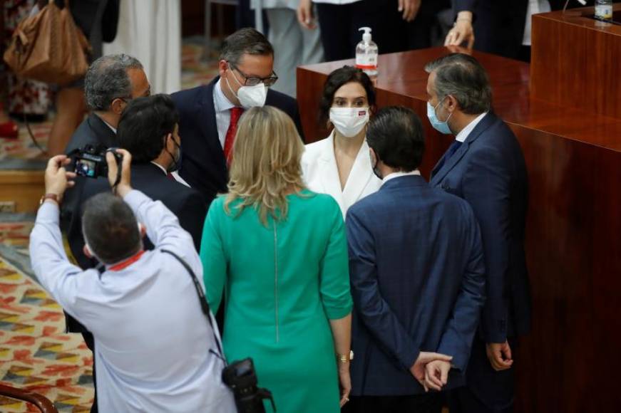 Efe.- Madrid (España), jueves 17 de junio de 2021. Isabel Díaz Ayuso ha pedido al pleno de la Asamblea de Madrid su confianza para proclamarse el viernes presidenta de la Comunidad con una exposición de planes de Gobierno en la que ha arremetido contra la gestión de Pedro Sánchez y ha hecho guiños al votante de Vox o Más Madrid, con anuncios de apoyo a la maternidad y sobre el medio ambiente.