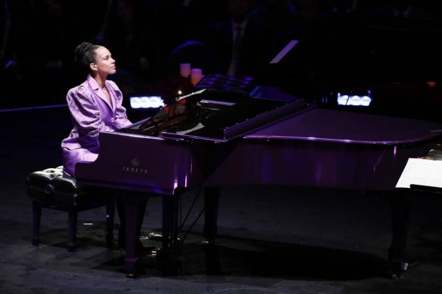 Después de un doloroso discurso de la leyenda del baloncesto Michael Jordan, que con la cara mojada por las lágrimas recordó a Bryant como amigo, alguien que siempre lo tenía «alerta» y como padre, cedió el turno a la compositora y actriz Alicia Keys.