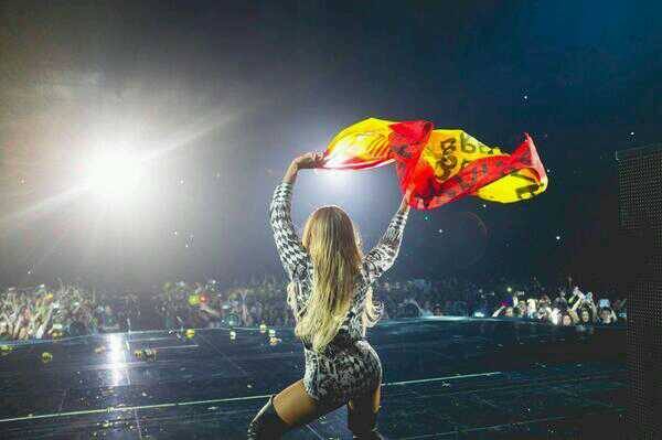 Lasvocesdelpueblo y Agencias – Se espera más 46 mil seguidores de Beyoncé Giselle Knowles, conocida como Beyoncé, hoy en el Estadio olímpico de Montjuïc (Barcelona). Es estadounidense y es actriz, diseñadora de moda, bailarina y canta muy bien. Nació en Houston, Texas (Estado Unidos de América). Tiene 34 años, es inteligente y sabe de historia. Habla inglés, español y entiende el francés. En su última visita a Barcelona en el Palacio de San Jorge, hace dos años –el 24 de marzo 2014– justamente a poco mese del golpe de Estado separatista catalanista del pasado 9 de noviembre de 2014, Beyoncé sorprendió durante su actuación; salió y bailó con la bandera de España. Los «nazis» separatistas del mundo yupi del proyecto racista antiespañol de Juntos Por El Sí (JxSí) la tacharon de «facha» a la cantante estadounidense por bailar con la bandera de la patria en Barcelona. Las ajuntamos dos fotografías con bandera de España. Barcelona (España), miércoles 3 de agosto de 2016. Fotografía: La cantante estadounidense Beyoncé Giselle Knowles, durante su actuación el pasado 24 de marzo 2014 en el Palacio de San Jordi de Barcelona, bailando con una bandera del Reino de España sin complejos. Archivo facilitado. Lasvocesdelpueblo.