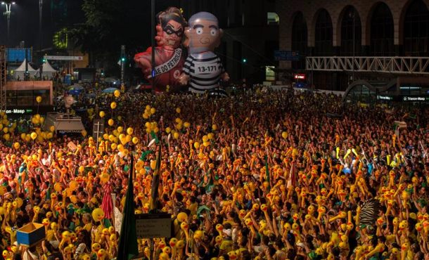 Efe – La presidenta brasileña, Dima Rousseff, quedó hoy a un paso de enfrentar un juicio político con miras a su destitución, después de que la Cámara de Diputados decidió por 367 votos frente a 137 que el proceso deberá proseguir en el Senado .Brasilia, 17 abril 2016. Fotografía: Miles de brasileños fueron registrados este domingo al seguir la votación de la Cámara de Diputados de Brasil, que decidió que el proceso con miras a la destitución de la mandataria brasileña, Dilma Rousseff, llegue a la instancia definitiva del Senado, en la avenida Paulista de Sao Paulo (Brasil). Efe.