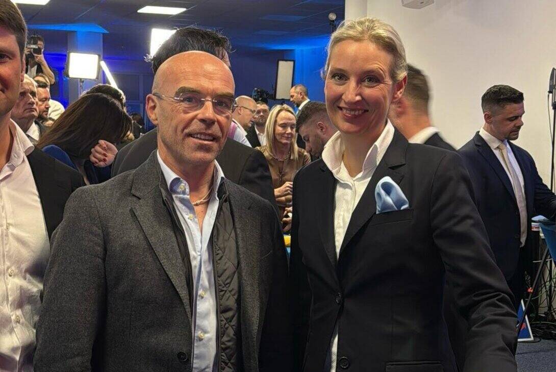 Berlín (Alemania), domingo 23 de febrero de 2025 (Lasvocesdelpueblo).- El jefe de la Delegación de VOX en la Unión Europea, y principalmente en el parlamento Europeo, el catalán Jorge Buxadé Villalba, ha considerado esta noches, desde la sede electoral de la AFD «UNA gran victoria de Alternative für Deutschland -Alternativa por Alemania- (AFD), una gran victoria de Alice Weidel» el resultado electoral conocido esta noche electoral de los comicios generales alemanas -19,5 % y 20 %, con lo que casi duplicó su voto en comparación con los comicios legislativos de 2021-, que ubica a la AFD como segunda fuerza política de Alemania detrás de la coalición WOKE conservador formado por la Unión Cristianodemócrata y la Unión Socialcristiana (CDU/CSU) -Partido Popular, PP- con entre un 28,5 % y un 29 % de los sufragios.