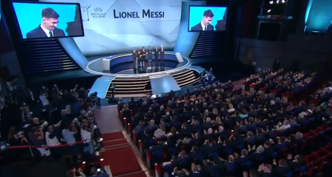 Su triunfo en este premio fue anunciado al término de la gala del sorteo de la fase de grupos de la Liga de Campeones de esta campaña en el Foro Grimaldi de Mónaco, donde Michel Platini, presidente de la UEFA, entregó el galardón a Messi, después de la votación en directo de los periodistas que dio como ganador al astro argentino.