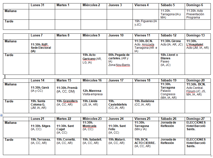 Calendario de campaña de Ciudadanos al 27-S (ampliar la imagen con un clic encima)