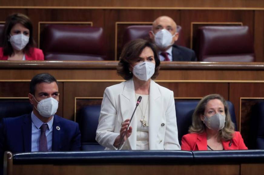 Efe – La vicepresidente primera del Gobierno, Carmen Calvo, ha tenido un nuevo encontronazo en el pleno del Congreso con el portavoz parlamentario de Vox, Iván Espinosa de los Monteros y de Simón, a cuyo partido ha acusado este miércoles de «cuestionar» el sistema y de tener «un problema con la democracia». Madrid (España), miércoles 19 de mayo de 2021.