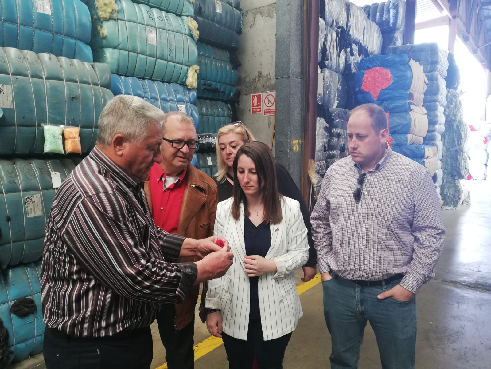 Durante la misma, el candidato al Senado por la provincia de Alicante, Pascual Moxica y los candidatos a las Cortes Valencianas Ana Vega, David García y Ana María Cerdán, conocieron de primera mano todo el proceso industrial de recuperación del textil, constatando el enorme peso económico y laboral que la citada actividad reporta no sólo en los citados municipios, sino a nivel provincial y nacional, siendo punteros en la exportación de material textil reciclado.