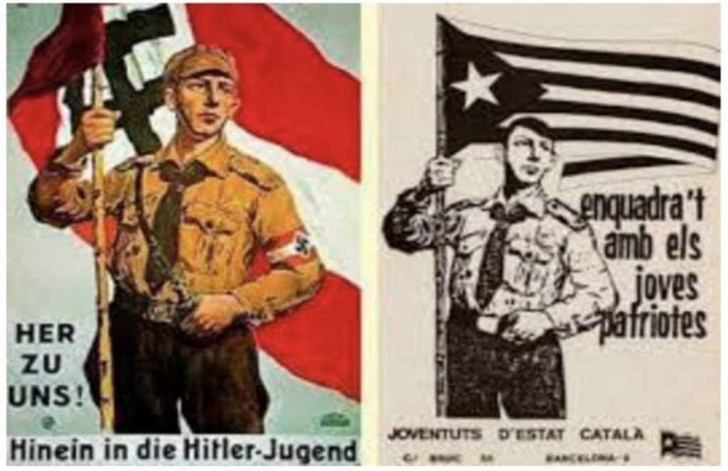 Esta Asociación suiza, que preside el ciudadano suizo, François Meylan, ha publicado este miércoles dicha carta abierta, que Lasvocesdelpueblo ha tenido acceso, con un combo de fotografías y varias fotos que muestran similitudes entre el proyecto independentista de ERC, Convergencia-PDECAT-JxCat y CUP en la Comunidad autónoma de Cataluña y el nacionalsocialismo (nazismo) de la Alemania Nazi del führer Adolf Hitler.