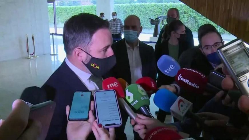 En declaraciones a los medios de información antes de presenciar el debate de investidura del ‘popular’ Alfonso Fernando Fernández Mañueco, que revalidará su cargo en la Presidencia de Castilla y León gracias a su acuerdo con Vox, Abascal ha considerado que era «importante» estar presente en este acto para apoyar a un Gobierno de coalición de Vox y PP que «abre una nueva etapa en Castilla y León» y supone una «esperanza para toda España».