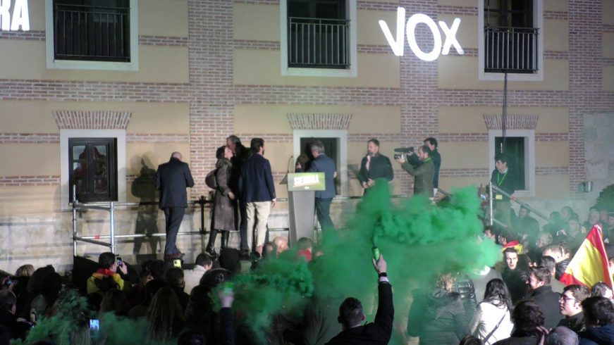 La formación presidida por Santiago Abascal Conde que apostó entonces por un joven abogado de tan solo 30 años, Juan García-Gallardo Frings, con el fin de devolver a la «Castilla Vieja» y León al «sitio que se merece» en toda España, consiguió dar una respuesta a las demandas de los castellanoleoneses en una campaña en la que, como no podría ser de otra manera, los candidatos verdes y sus simpatizantes «no se han dejado caer en la trampa de esos medios de comunicación lacayos que nos caricaturizan, nos estigmatizan y nos ocultan», manifestó esta noche electoral el candidato Frings.