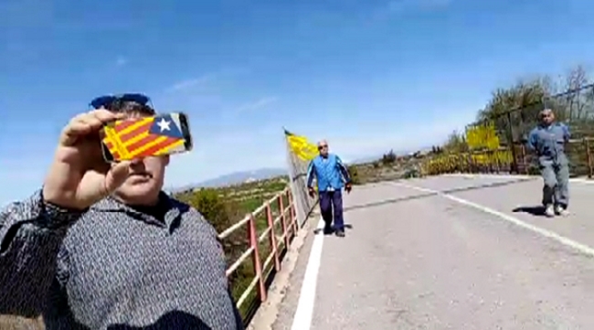 Vídeo. Argensola (Anoia) Barcelona, 01.04.2018. CDR se echa a correr asustado ante una mujer española de «Groc Enlloc» en Argensola