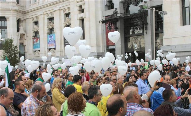 Los manifestantes, con globos de corazones blancos en los que se leía Custodia Compartida, han desfilado tras una pancarta con el lema: «Un sí por el derecho a mamá y a papá de los niños en España». La iniciativa ha surgido por el llamamiento de un padre madrileño, Pascual Campos, a través de las redes sociales, a la que se han sumado asociaciones y formaciones políticas a favor de la custodia compartida, explican en un comunicado.