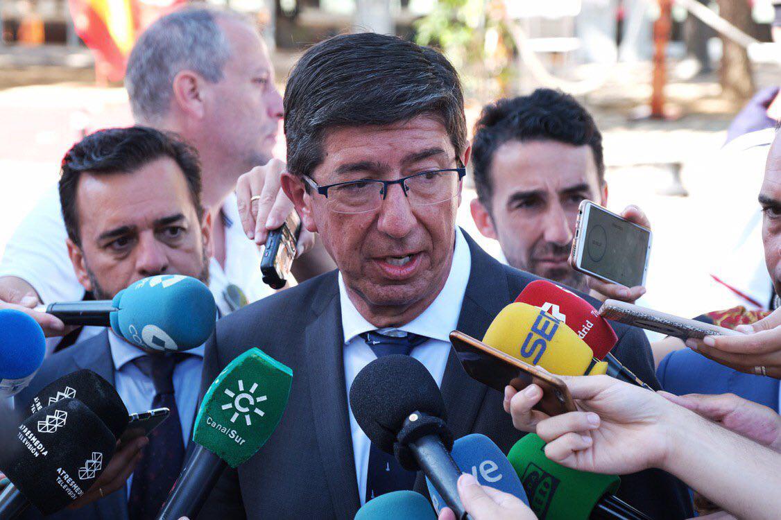 Redacción – «Espero que Sánchez haga caso al Rey, ponga en marcha un gobierno y acabe con toda su escenografía de este verano», ha afirmado Juan Marín, el portavoz de Ciudadanos (Cs) Andalucía y actual vicepresidente del Gobierno autonómico de la Junta de Andalucía (PP y Ciudadanos), que ha recordado que el presidente español en funciones «lleva más de cien días sin formar gobierno». Sevilla (España), sábado 10 de agosto de 2019.
